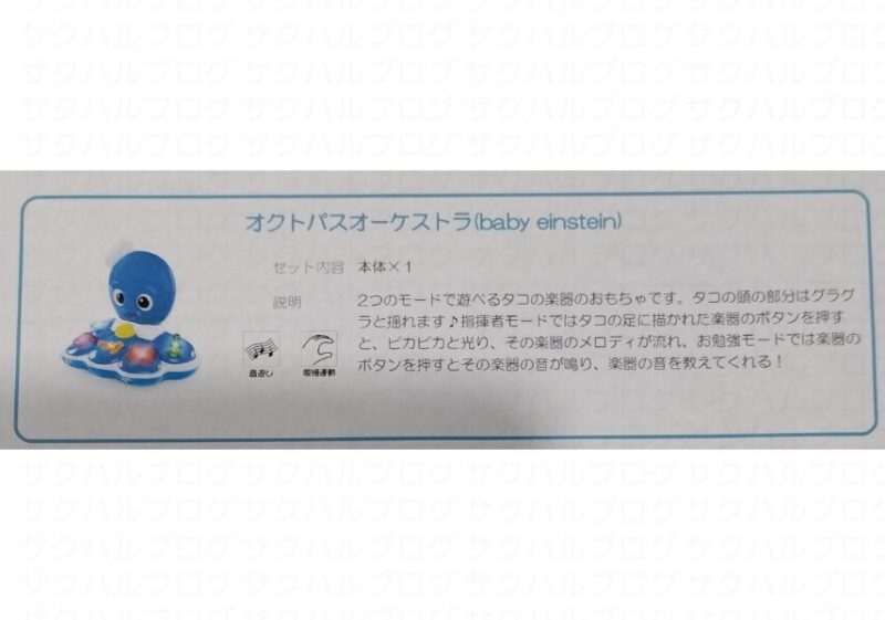 - 商品名(ブランド名)⇒ オクトパスオーケストラ(baby einstein)
