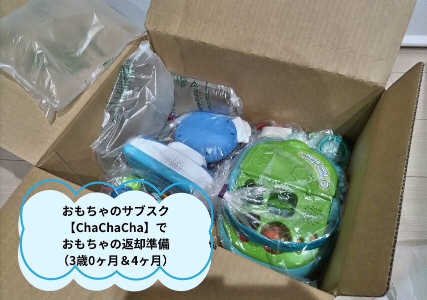 3歳0ヶ月の娘ちゃん&4ヶ月の息子くんのために、おもちゃのサブスク【ChaChaCha】を利用中です。